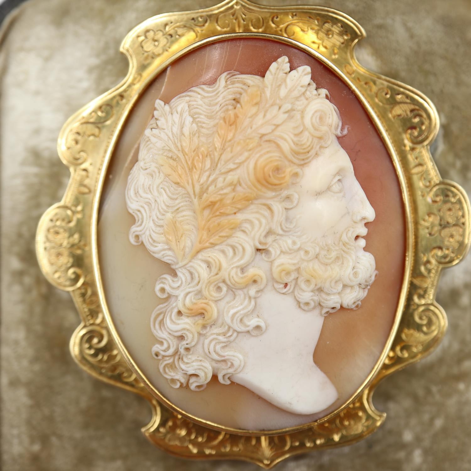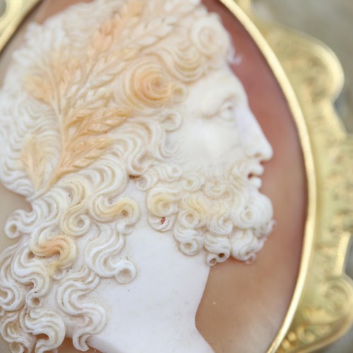 A fine carved large shell cameo portrait, set within an unma...
